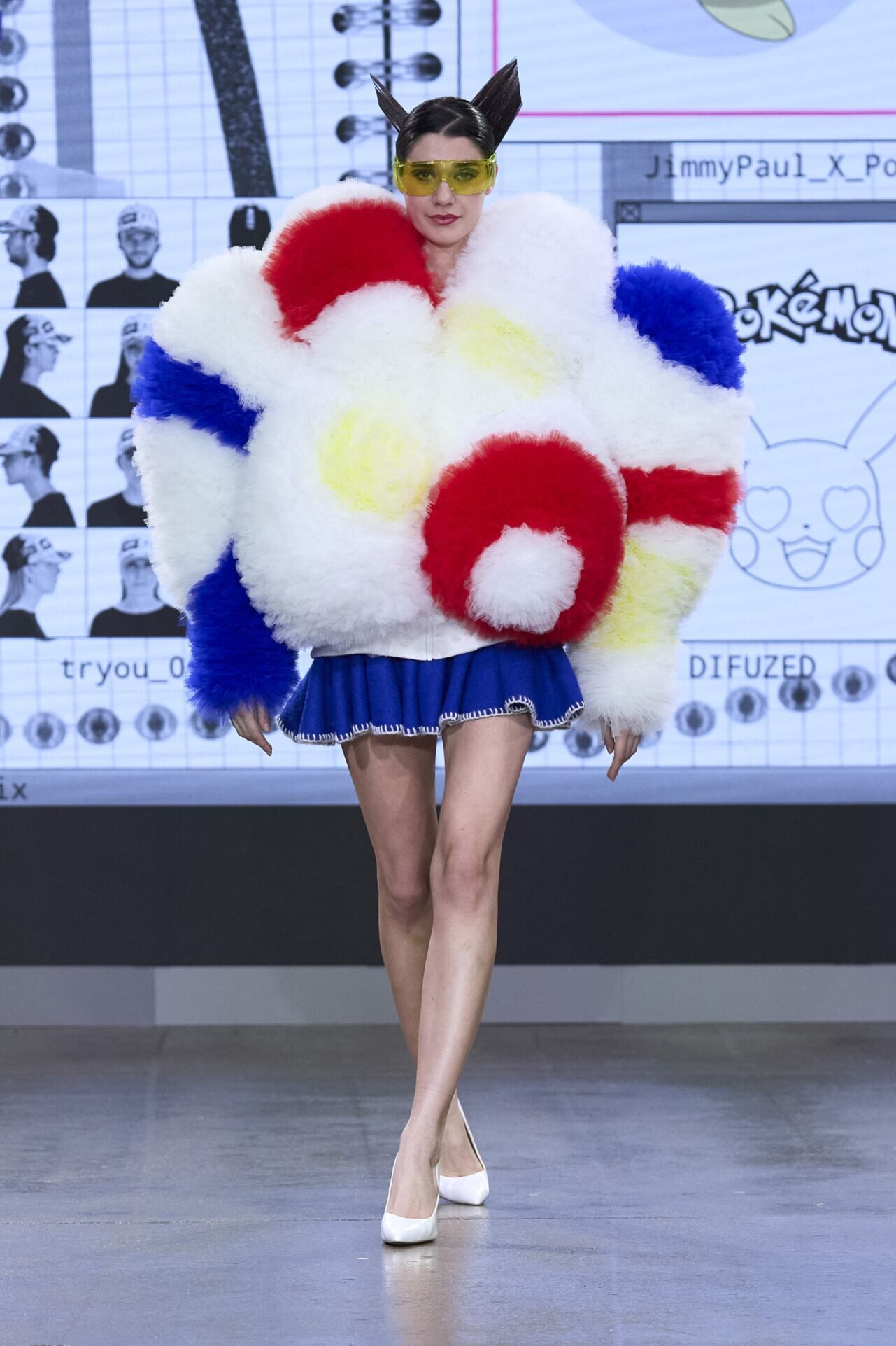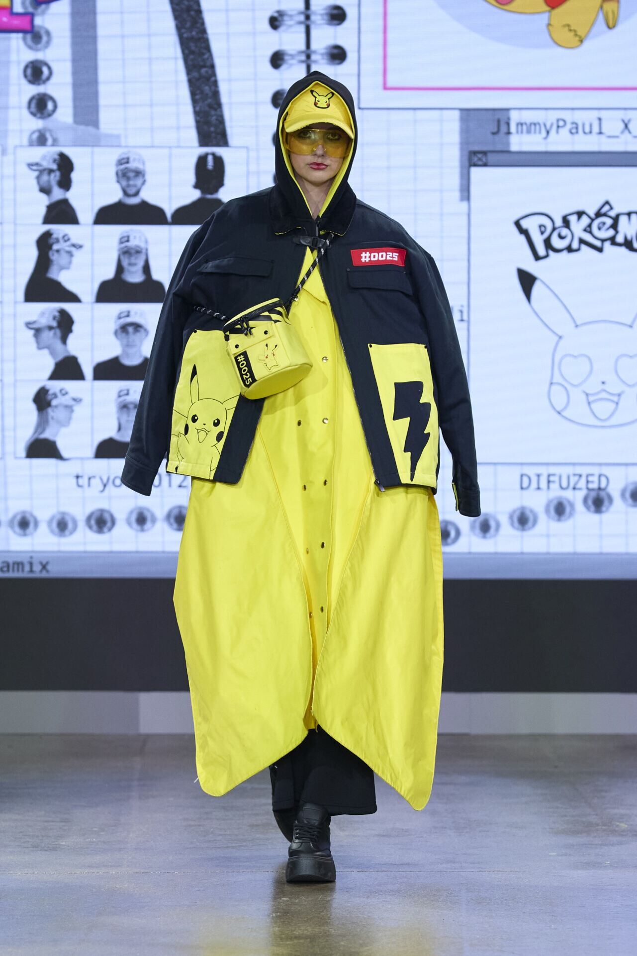 The Pikachu section referenced Japanese workwear and the chromatic boldness of the 1980s. Yellow functioned not as a symbol but as visual dominance.