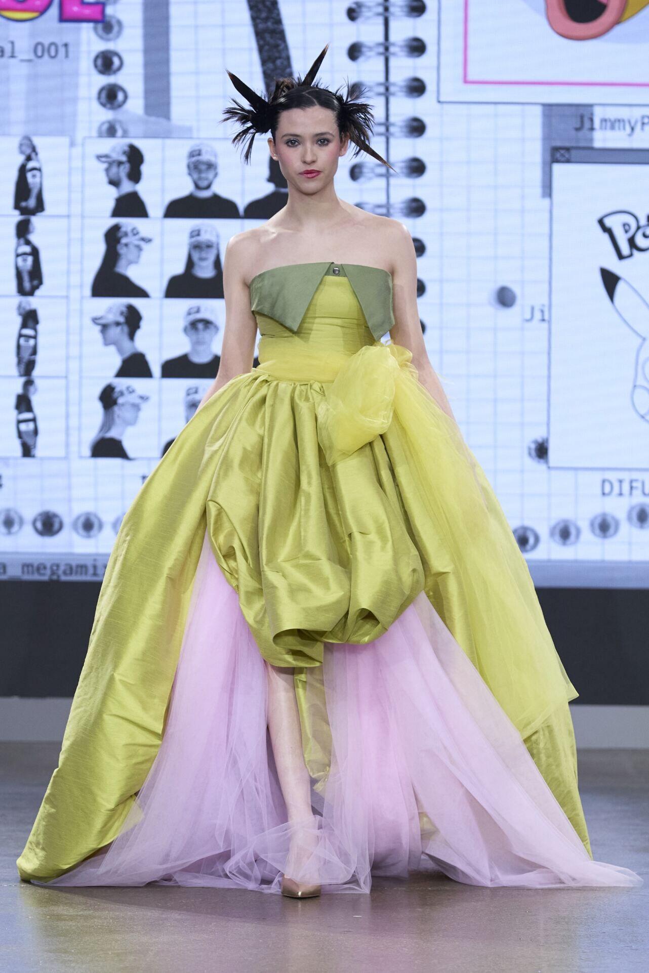 The Eevee-inspired looks shifted toward softness through transparency and layered volume. The effect was controlled rather than sweet — femininity expressed as composure.
