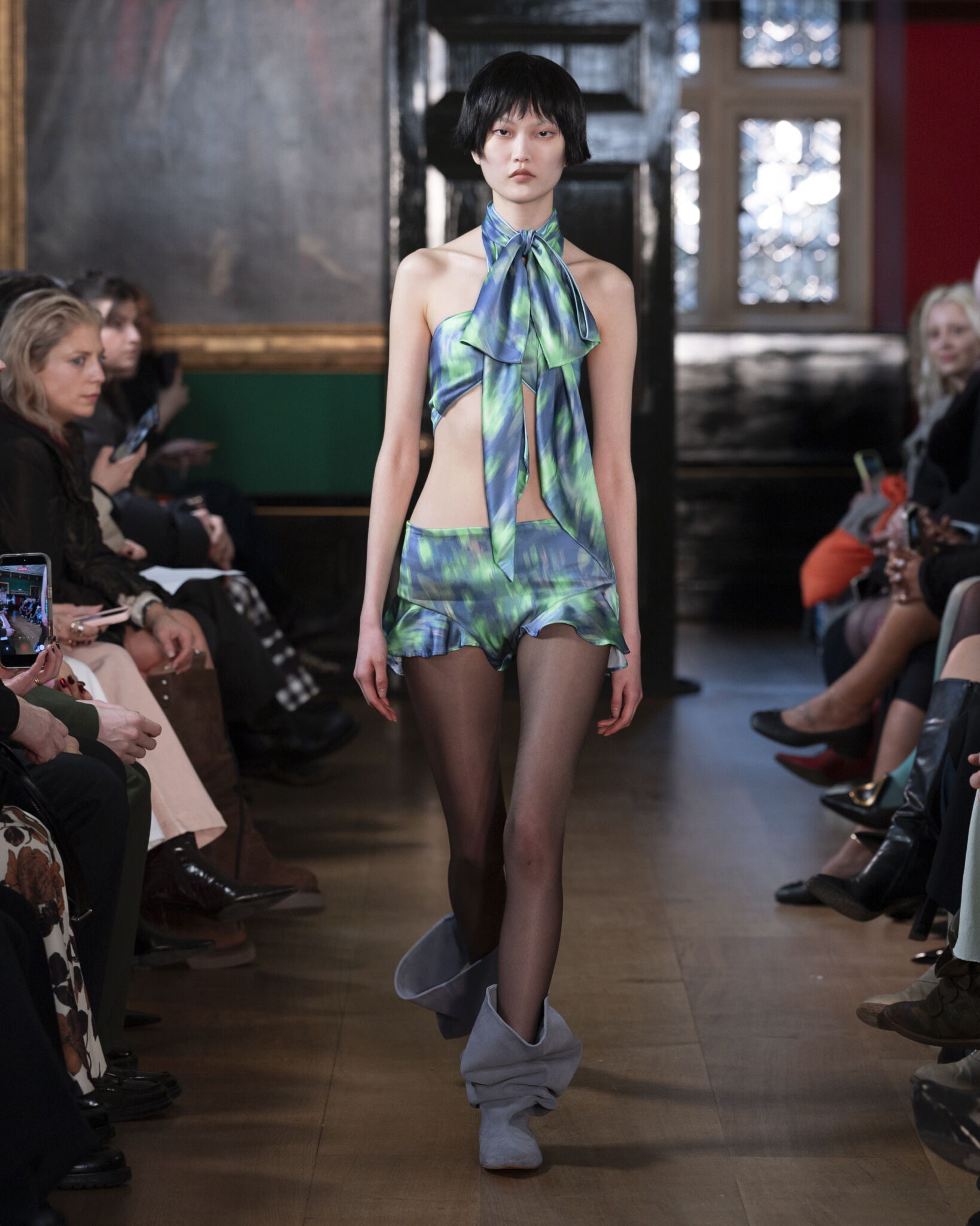 As the show progresses, the mood shifts. Two corset mini dresses mark this moment.