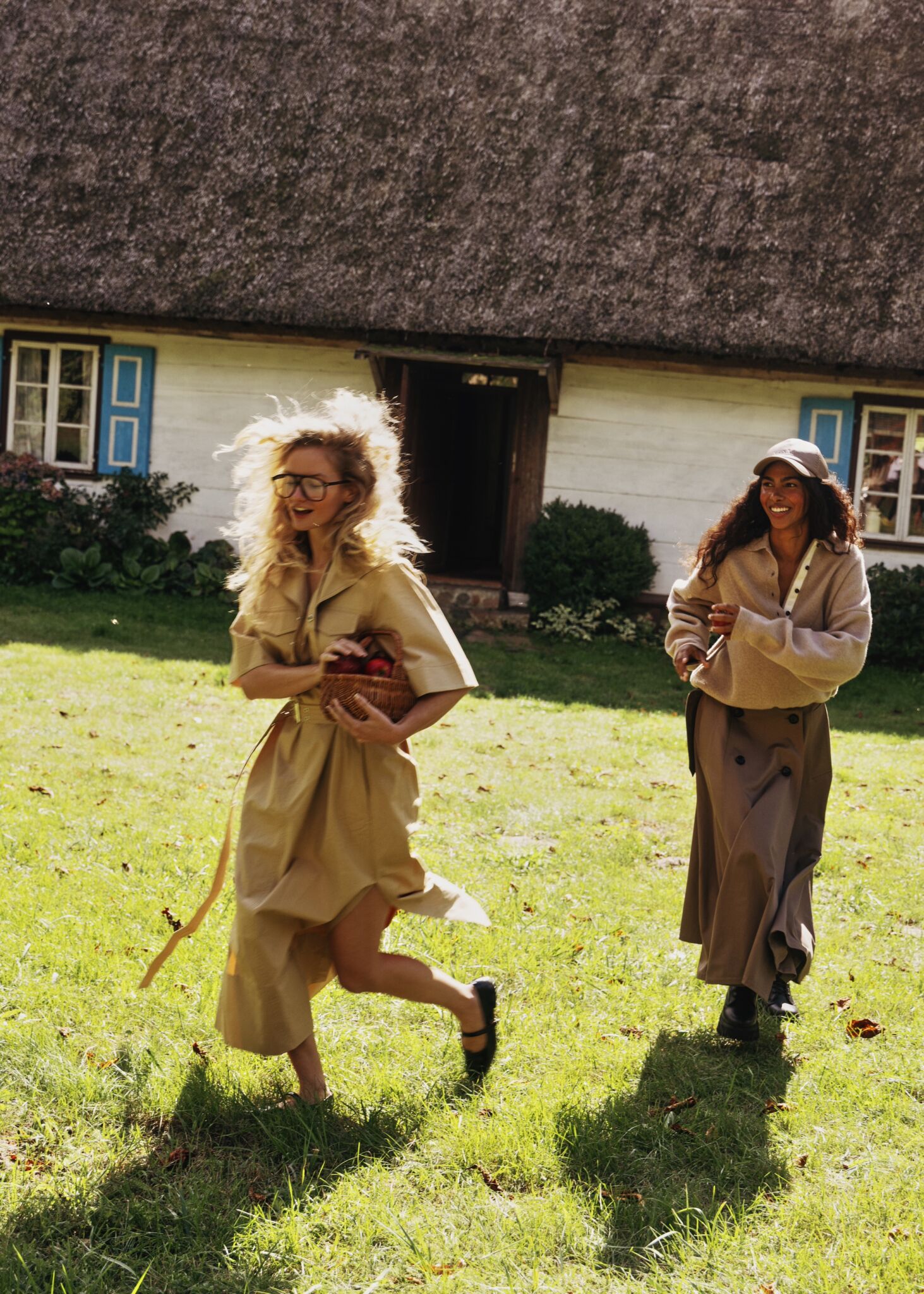 The colour palette is grounded in natural tones. Milky white, warm beige, shades of earth, and tree bark form a serene visual landscape in which every accent feels deliberate and refined. Natural light remains central, highlighting the fabrics' textures and the authentic presence of the heroines within the frame.