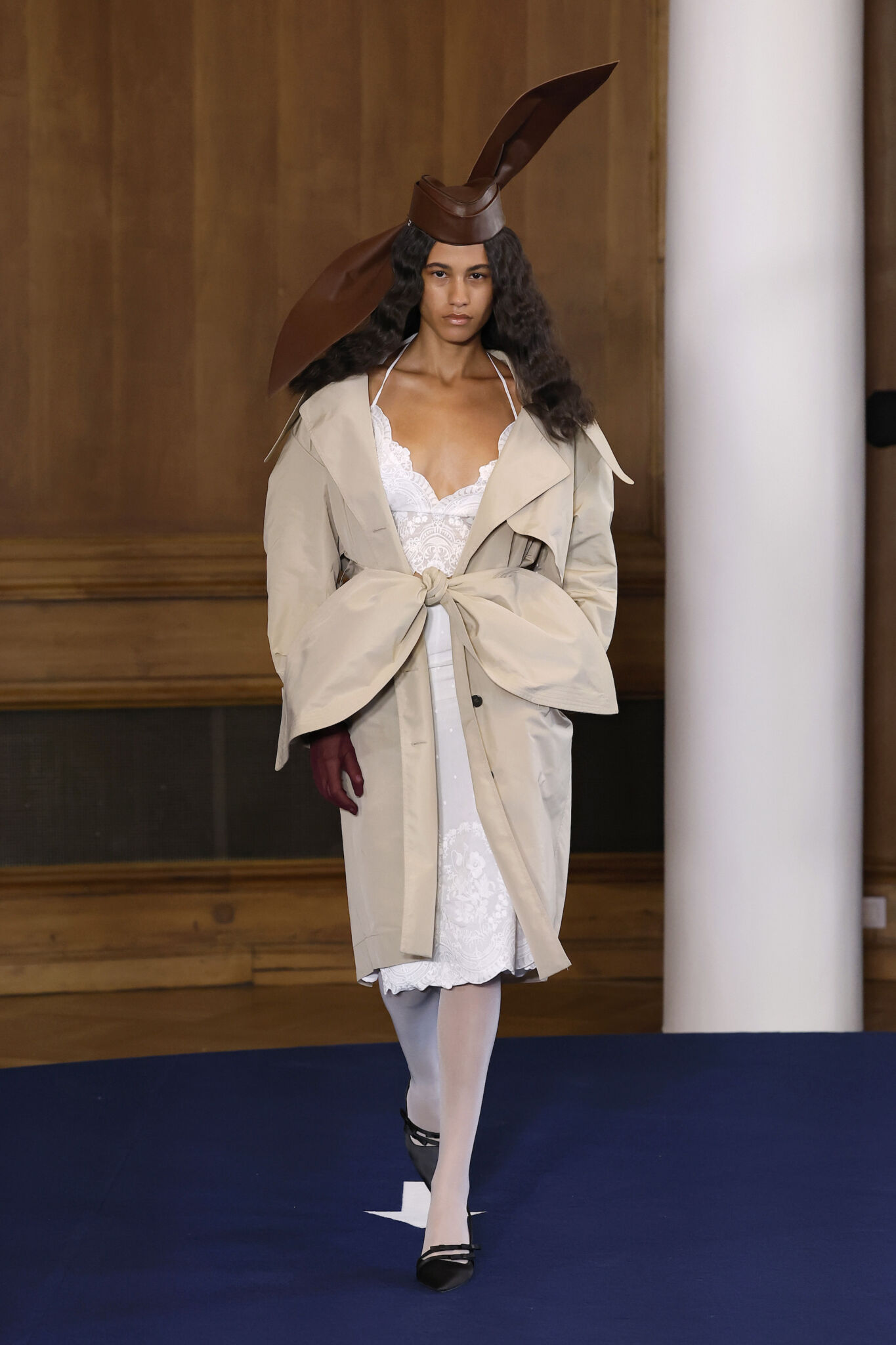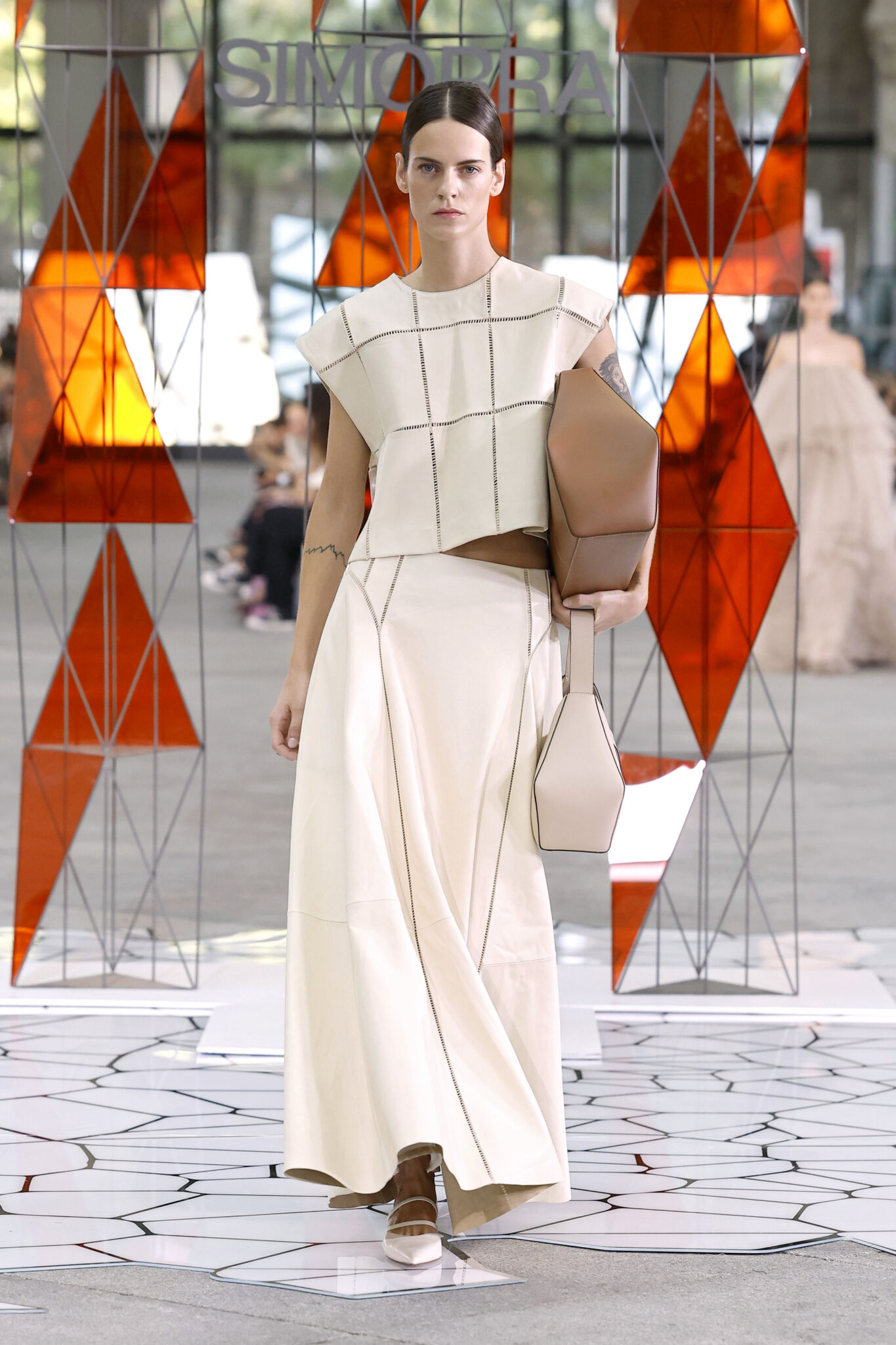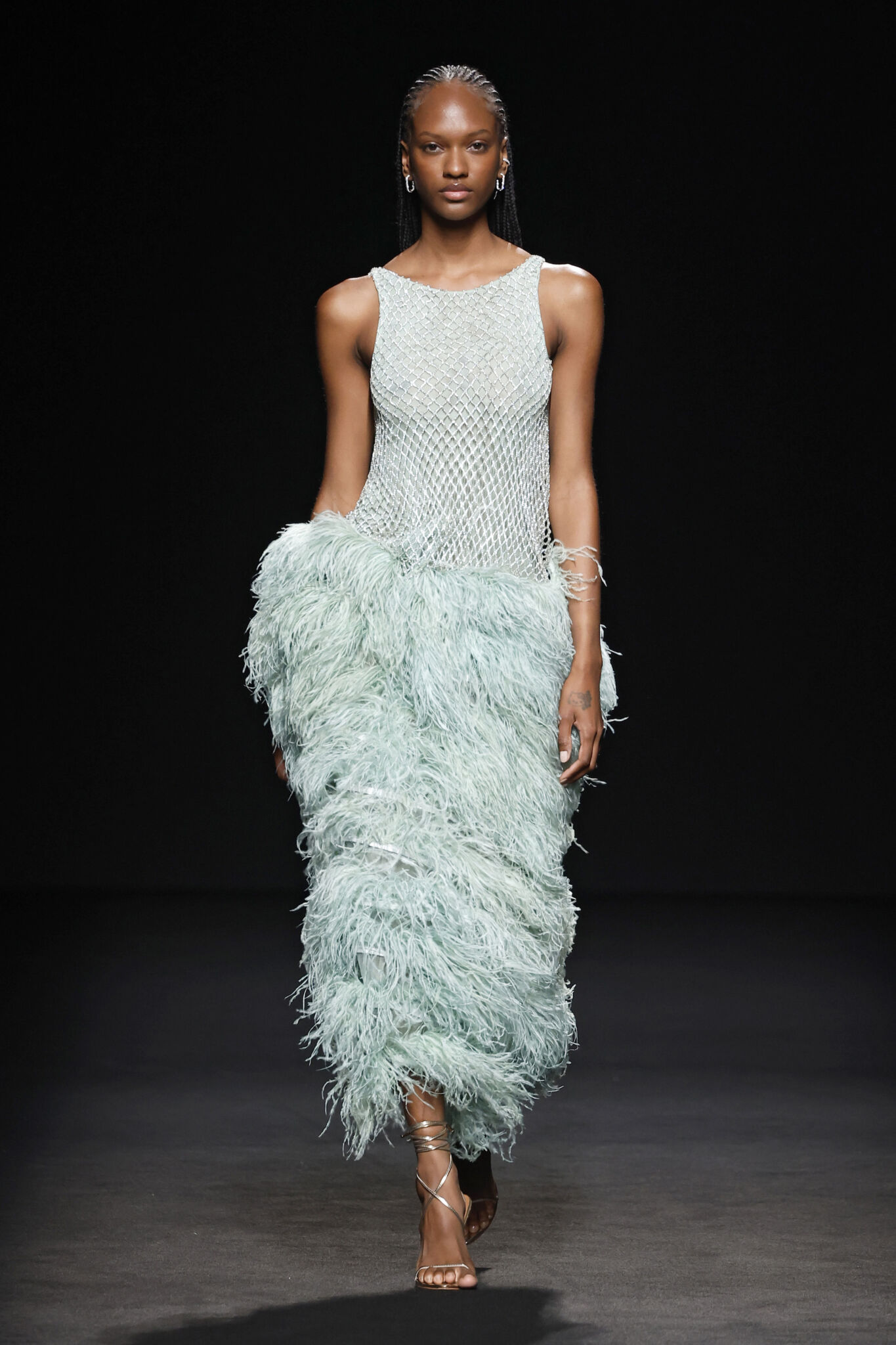 Another collection infused with elements of Japanese architecture and culture. Volume is the brand’s signature feature. Created under the direction of Isabel Sanchis and her daughter Paula Maiques, the lineup is built around two key principles: architectural shapes and the interplay of opposing values in Japanese aesthetics. The collection features flowing dresses and ready-to-wear pieces in shades of green, orange, and soft pink. Special emphasis is placed on handcraftsmanship: micro-pleating and embroidery inspired by wall paintings. The finale underscores the brand’s signature black-and-white combinations, focusing on voluminous silhouettes and innovative techniques. Geometric embroidery, seamless dresses, and 3D-printed floral and silicone elements all make an appearance. Traditional methods are closely intertwined with modern technologies, creating a unique sense of structure and lightness.