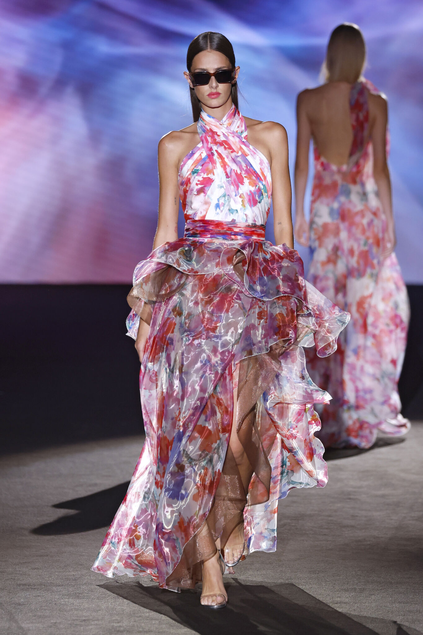 “La Gran Metrópoli” pays tribute to the nighttime metropolis, revealing its beauty through a rich palette ranging from orange and burgundy to amethyst and garnet shades. Drawing inspiration from the works of Mark Rothko, the atmosphere of Tokyo’s Shibuya district, and Olafur Eliasson’s light installations, the brand presents fashion as a living art form infused with the energy of the city. The collection takes viewers on a visual journey from the warm glow of sunset to the electric intensity of dawn. Under the creative direction of Nacho Aguayo, the womenswear line explores the edge of evening allure – with flowing fabrics, sheer textures, and sensual shimmer. Dominant elements include long dresses with fluid silhouettes that mirror the city’s constant motion. Striking tie-dye patterns transform into bursts of color reminiscent of tropical landscapes. Lightweight silks and delicate transparency add a sensual dimension to the looks. The menswear segment, created by Alex Miralles, offers a fresh take on the classic suit, proposing a more flexible and modern vision of masculinity.
