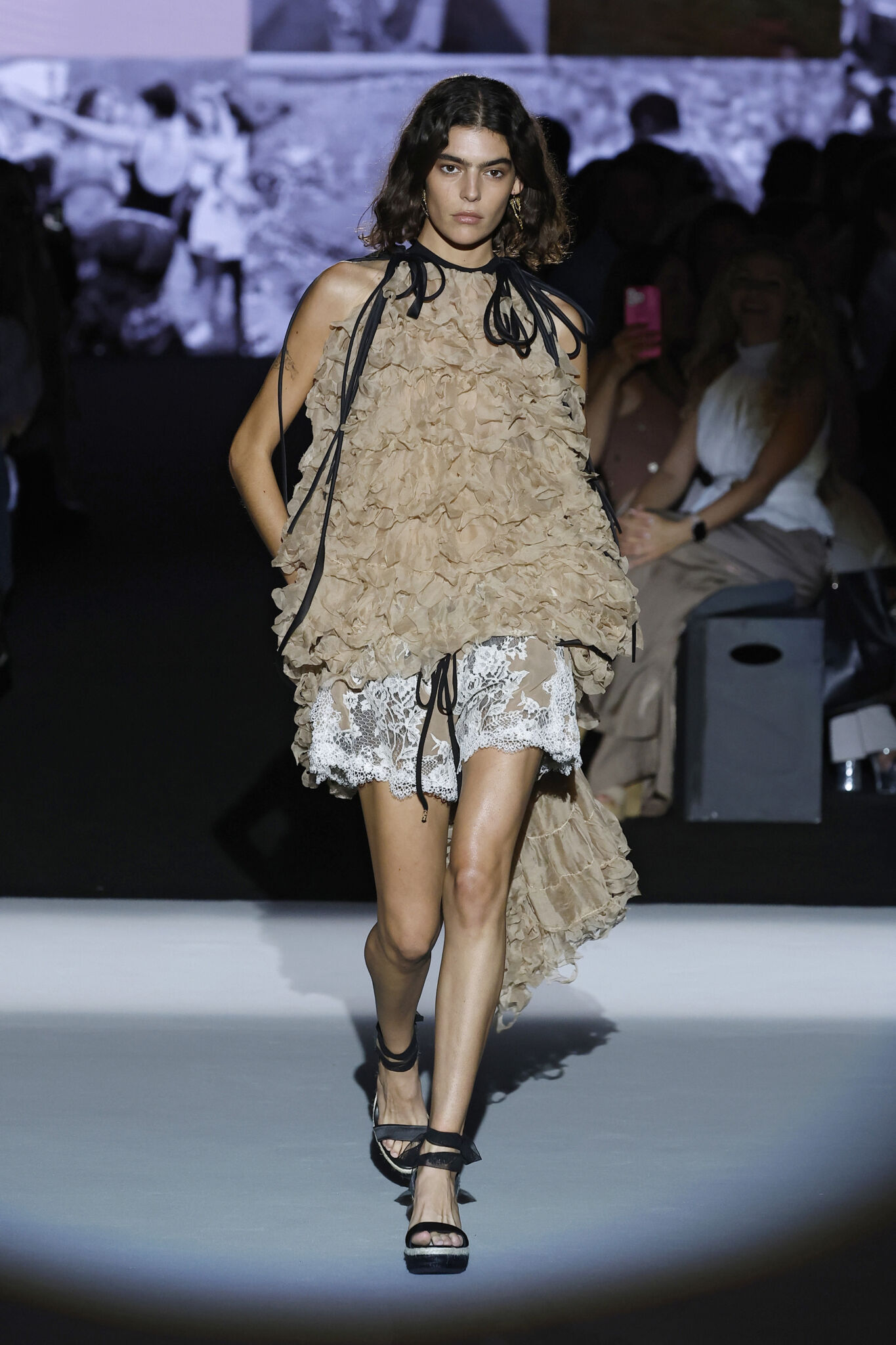 The brand returns to its roots, paying homage to boho – the philosophy upon which the fashion house was founded. Under the concept “Back to Boho”, the designers explore the style that defined their earliest collections, reimagining it through the lens of haute couture craftsmanship. Each dress seems to tell a story of freedom and boldness, combining spontaneity and daring in a contemporary way. Flowing silhouettes, layered fabrics, and airy volumes create a sense of lightness and ease. Delicate hand embroidery, lace inserts, ruffles, and sheer elements emphasize the romantic and bohemian aesthetic. Victorian influences blend seamlessly with modern boho, forming a unique visual language. Signature accessories – clogs and cowboy boots – complete the looks, adding character and edge. Every piece reflects the harmony between traditional craftsmanship and innovative design.