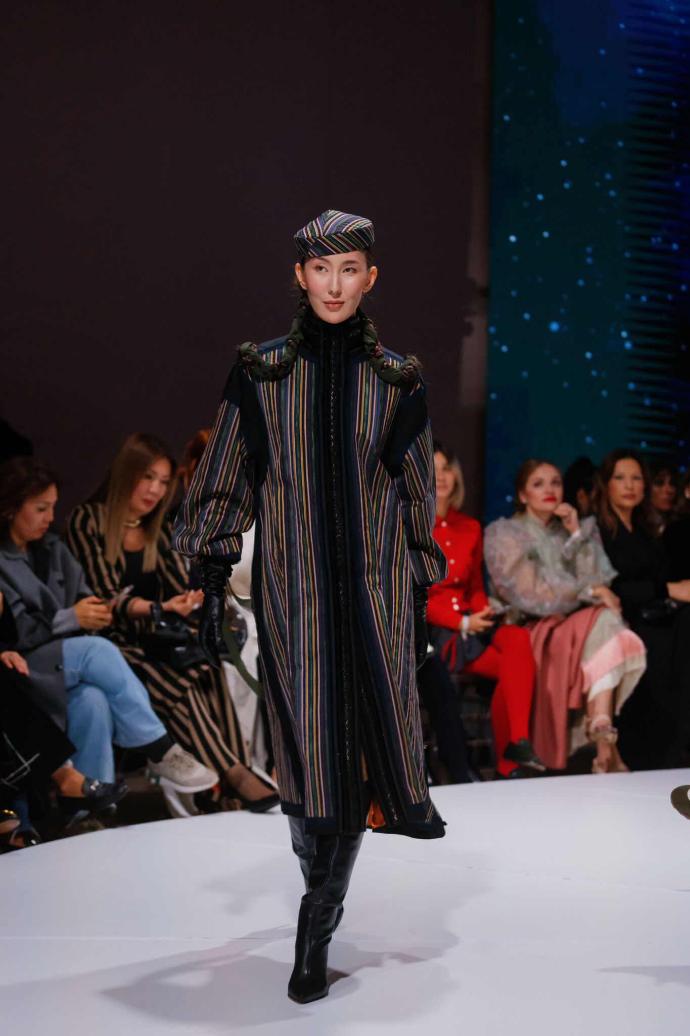 Each look remained rooted in Kazakh traditions while speaking a contemporary language — a story of a woman growing, searching for herself, and finding beauty in every stage of life.