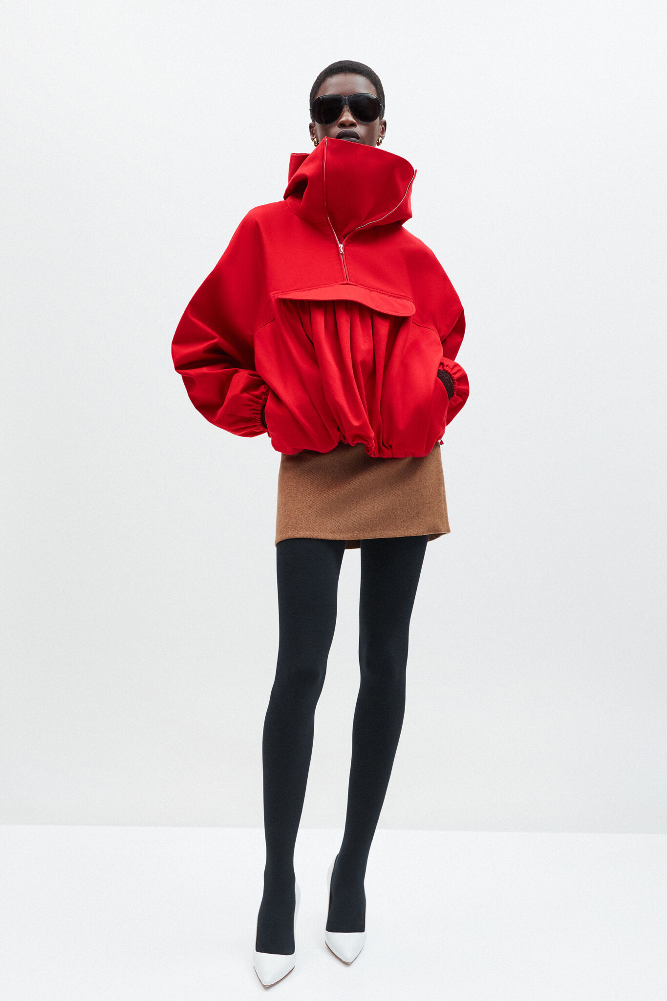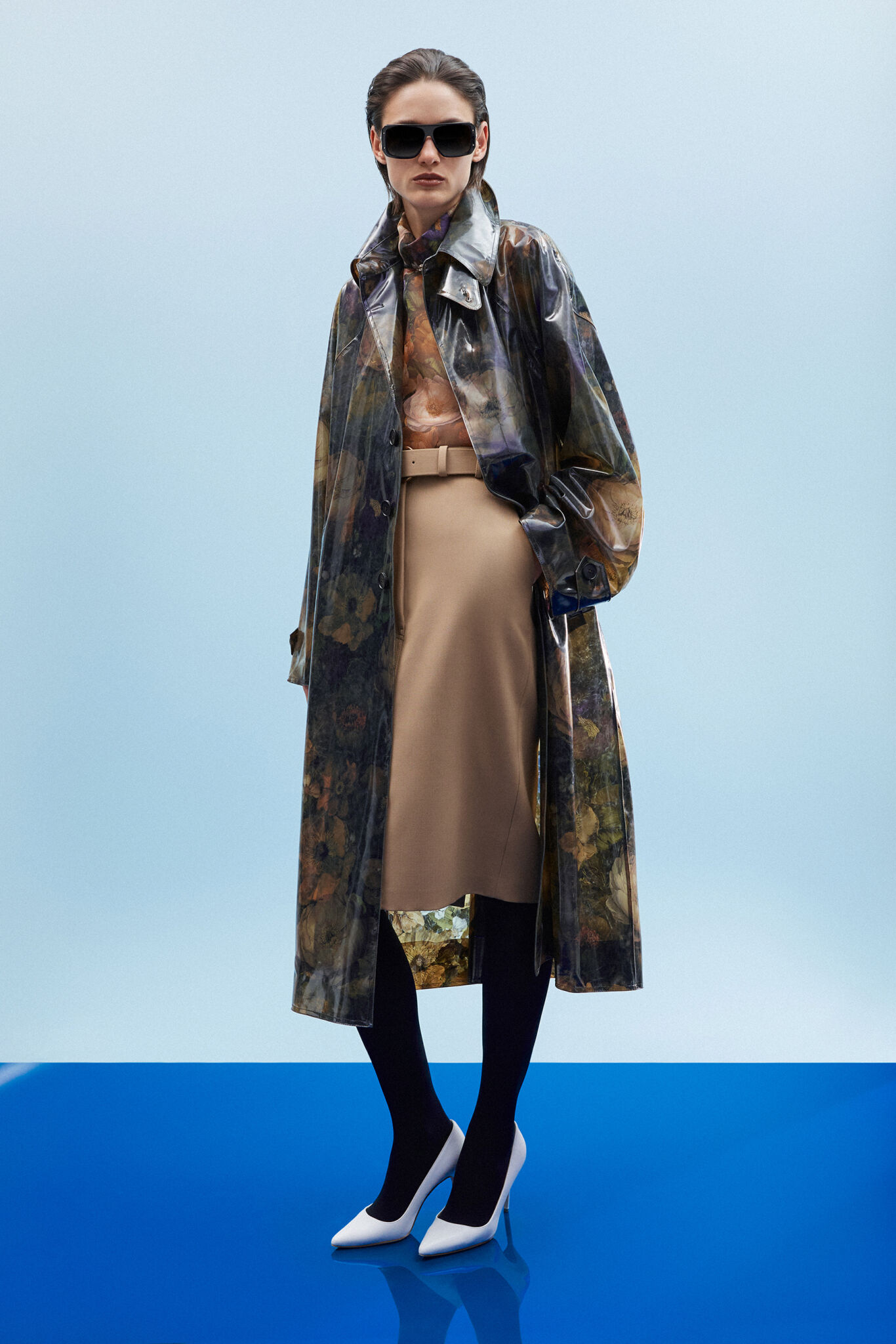 Джозеф Альтузарра преобразовал повседневный гардероб, наполняя его драмой через призму испанской культуры. Вдохновляясь живописью Диего Веласкес, кинематографом Педро Альмодовар и Луис Бунюэль, дизайнер исследует, как эмоциональная насыщенность может существовать в рамках ежедневной одежды. Подчеркнутые плечи жакетов и пальто, объемные воротники бушлатов и текучие юбки с отсылкой к фламенко создают выразительный контраст структуры и движения. Платья сочетают легкость с декоративной экспрессией: бахрома из помпонов, анатомические принты, мерцание стекляруса и пайеток придают им динамику без утраты носибельности. Даже базовые вещи получают неожиданный поворот — водолазки с удлиненной накидкой на спине, юбки с сетчатым принтом, плотницкие брюки в замше, дениме и канвасе выводят утилитарность на новый уровень. Палитра строится на глубоком бордо, зеленом, нежно-розовом и приглушенном голубом, уравновешенных черным, коричневым и белым, а принты в горох и живописные мотивы добавляют художественную многослойность. В результате строгость и чувственность, будничность и театральность существуют в идеальном балансе.