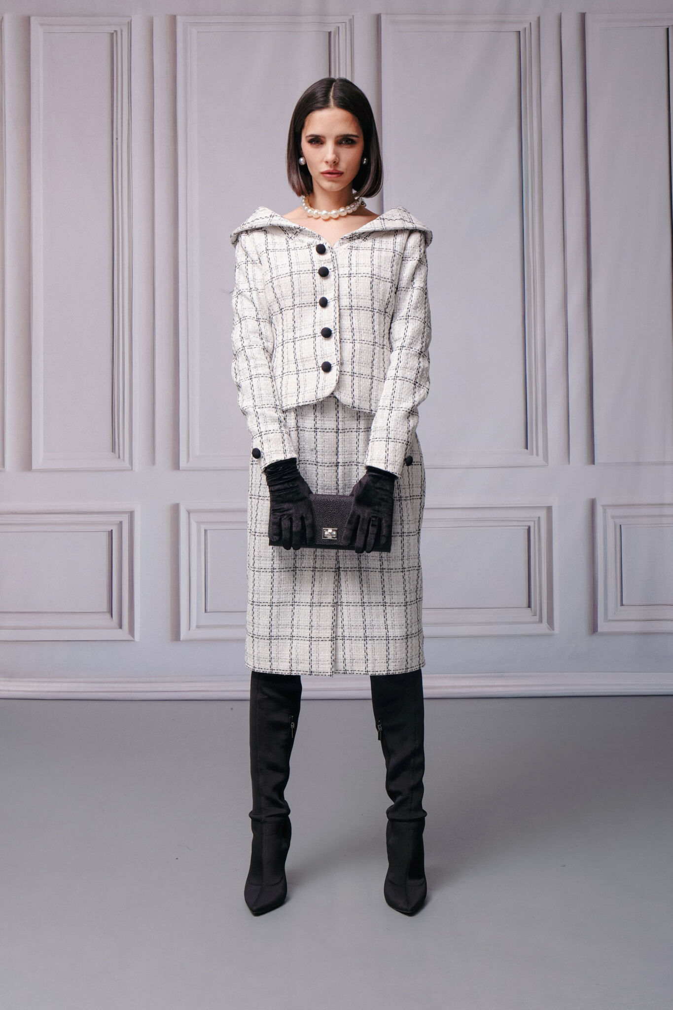 Бренд строится вокруг силуэта и идеи продуманного гардероба: вещи пластично двигаются вместе с телом и органично вписываются в ритм городской жизни. После опыта работы в крупных модных домах, дизайнеры сделали ставку на независимость и камерность, сосредоточившись на одежде, рассчитанной на долгую жизнь сезон за сезоном. Осенне-зимнее настроение раскрывается через плотные шерсти, вельвет, клетку и полоску, а палитра звучит темнее и собраннее. В линейке мини уступают место миди, силуэты рассчитаны на многослойность, а микс принтов становится смелее и увереннее. Среди ключевых элементов — рубашка с классическим воротником и гипертрофированными рукавами-долман, брюки по косой, переосмысленные формы турнюра и мужской галстук, введенный как ироничный стилистический акцент, балансирующий между полировкой, эксцентрикой и игрой.