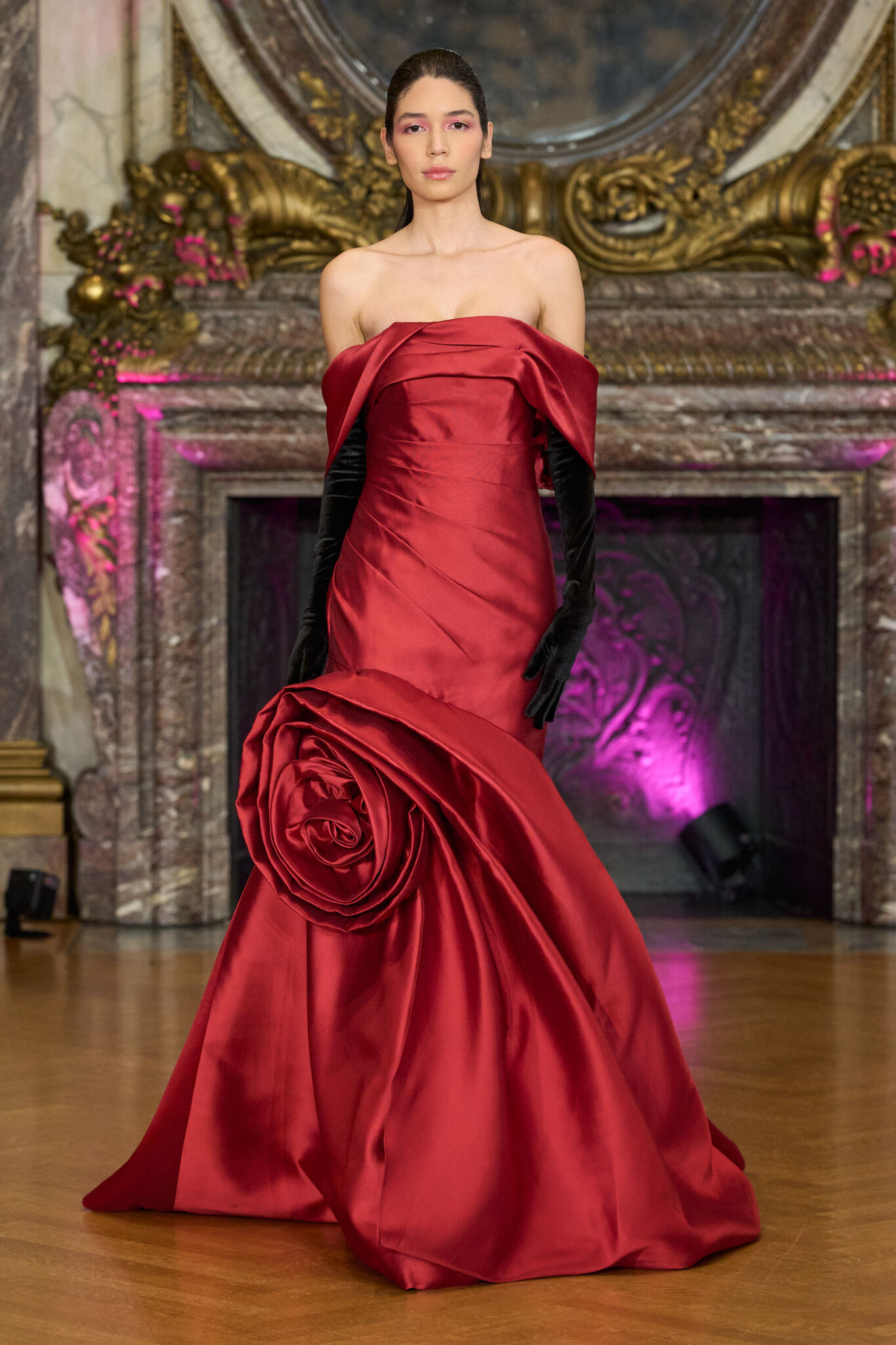 Дизайнер представил игру на контрастах: мягкость здесь соседствует с внутренней силой, а игривость балансирует на грани дерзости. В коллекции переосмыслена романтика, наполненная современным и бескомпромиссным характером. Скульптурные силуэты расцветают объемными трехмерными цветами, где каждый лепесток создан с почти ювелирной точностью, придавая образам живую пластику. Сложнейшая вышивка бисером превращается не только в украшение, но и в своеобразную броню, соединяя кутюрное наследие с выразительным языком современности. Визуальный код марки строится на филигранной работе с кристаллами, жемчугом, тончайшим французским кружевом и тюлем. Черпая вдохновение в мировом искусстве, различных культурах и духовности, Азенабор объединяет винтажные, африканские и европейские влияния в выразительных кутюрных и свадебных образах.