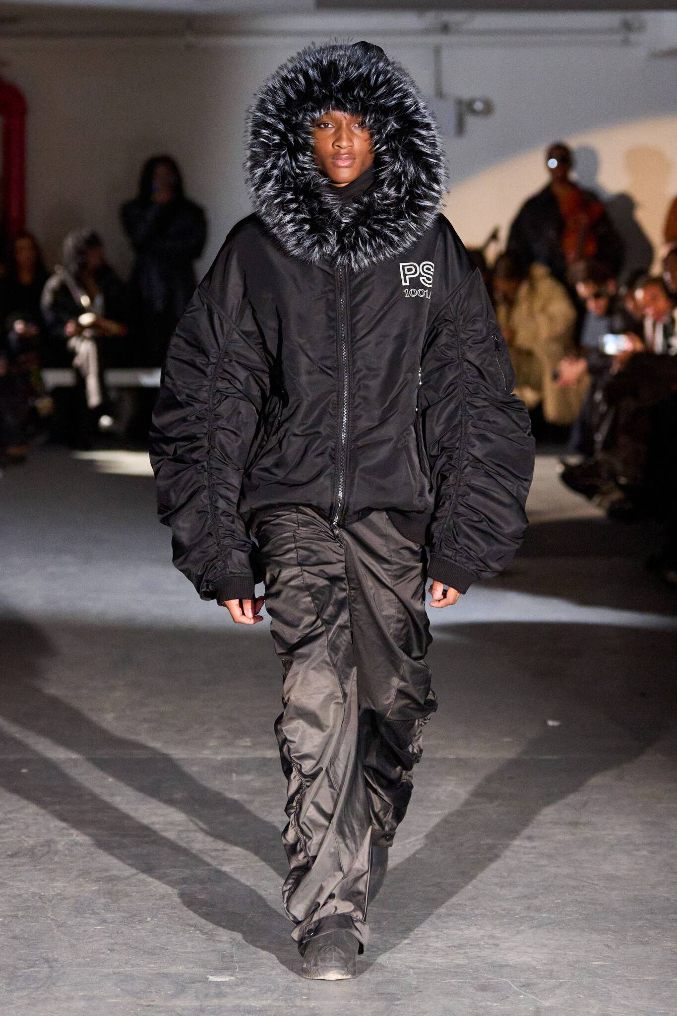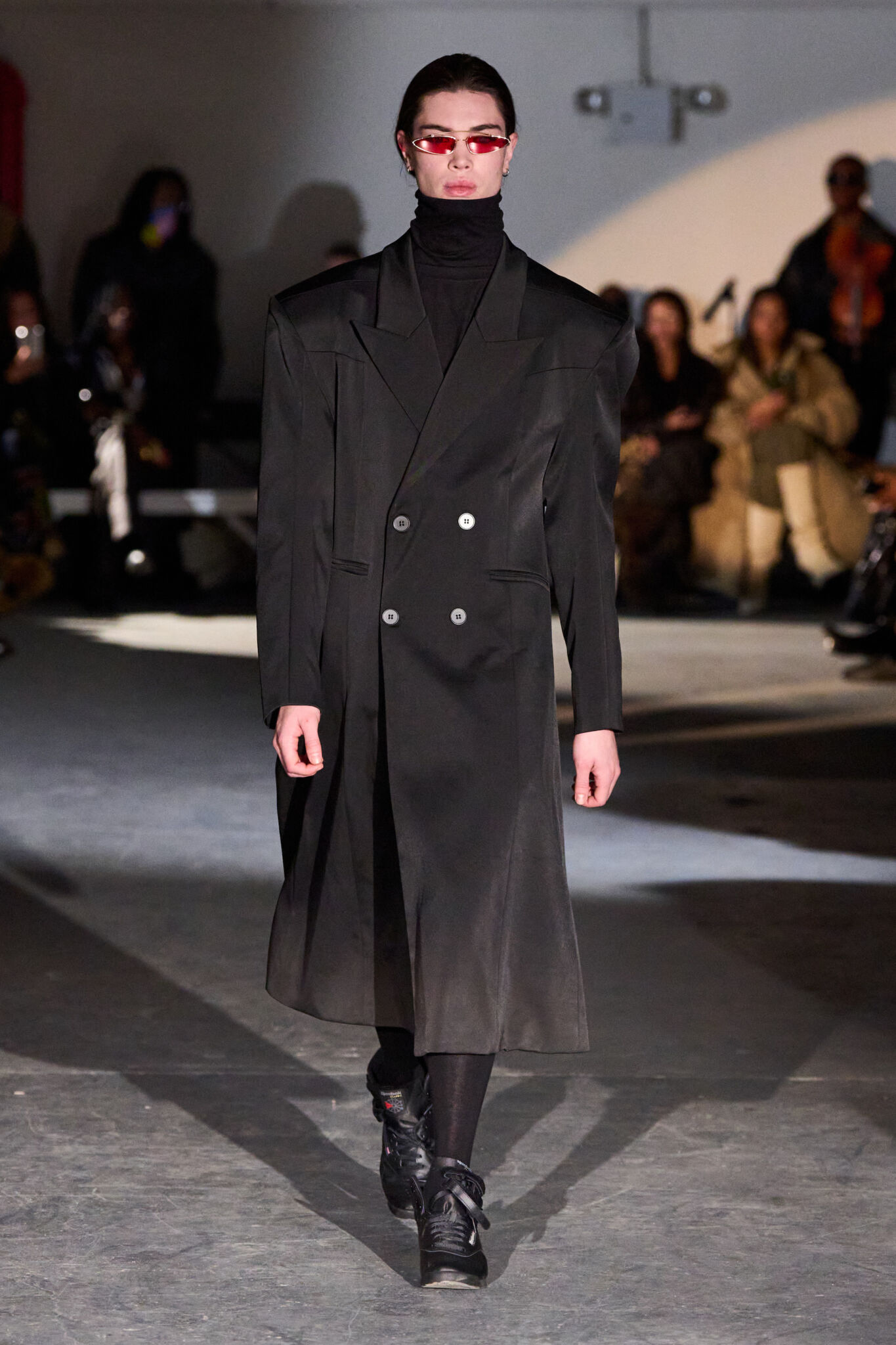В основу показала легко исследование черного цвета, который стал для креативного директора Рафаэль Янг не эмоциональным жестом, а методом работы с формой и объемом. В центре коллекции Dark Matter — точный тейлоринг, выверенные пропорции и скульптурная верхняя одежда, где линия кроя играет ключевую роль. Силуэты построены на контролируемом объеме и архитектурной строгости, подчеркивающей силу фигуры. Материалы подобраны так, чтобы поглощать и отражать свет, усиливая ощущение глубины и акцентируя конструкцию изделий. Декоративность уступает место чистоте исполнения и продуманной инженерии вещей. Одежда демонстрирует дисциплинированный подход бренда к современному костюму, в котором форма и структура становятся главным выразительным средством.