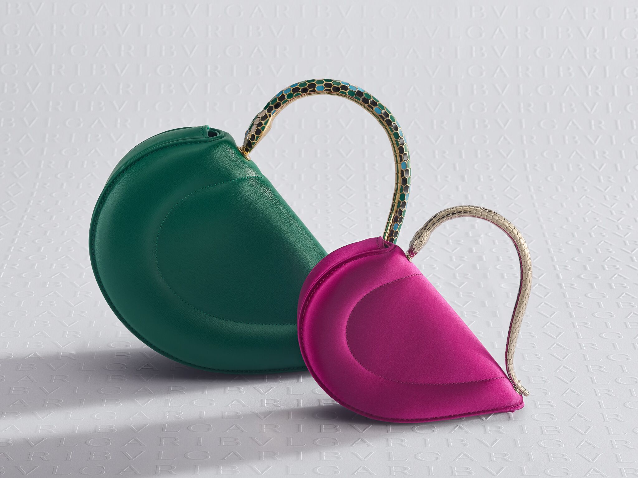 Serpenti в этом сезоне звучит мягче и романтичнее. Serpenti Cuore 1968 — сумка в форме сердца с металлической ручкой-змеей, покрытой ручной эмалью в четырех оттенках. Версия из кожи Smeraldo Prezioso появится в августе. Миниатюрная Serpenti Cuoricino — уже почти драгоценность. Черный и магентовый атлас, золотистая кожа Soft Nappa — каждый вариант по-своему вечерний. А версия Royal Ruby Neige Pavé Crystal с 4 638 вручную закрепленными кристаллами и вовсе превращает аксессуар в сияющий объект желания. Ее премьера намечена на ноябрь 2026 года. Serpenti Forever продолжает историю знакового символа — змеи как образа обновления. Новая Elongated Top Handle получилась вытянутой, лаконичной и очень современной. Помимо классической чёрной кожи, будут версии из замши Terracotta Nabuk и блестящей кожи karung в насыщенном Forest Emerald.