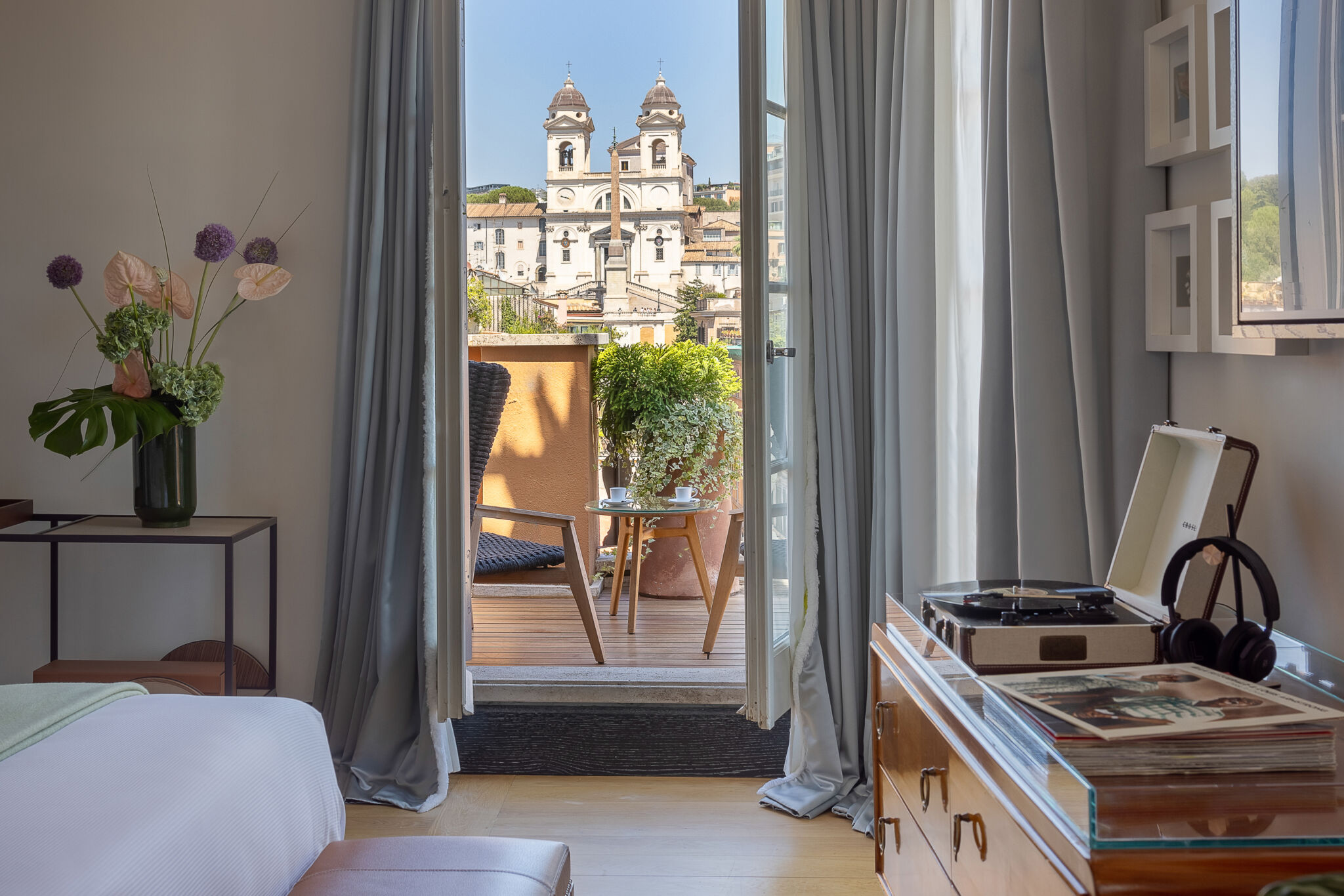 Начните день с завтрака на одной из панорамных террас двухэтажного люкса Тринита-деи-Монти с видом на французскую церковь Троицы на горах и Виллу Медичи, в котором есть даже тренажерный зал и сауна, или поднимитесь вместе с чайками на секретную террасу, вход на которую доступен только гостям Portrait Roma: откройте газету Weekly Tips, чтобы узнать все культурные новости Вечного города, закажите кофе из традиционной мокки Bialetti и непременно возьмите булочку Маритоццо со взбитыми сливками, ведь когда-то женихи в Риме делали предложение с помощью этой сдобы. А вечером устройте аперитив у камина с панорамой Вечного города. Оказавшись за дверями Portrait Roma, вы сразу попадаете в сердце Рима: Испанская лестница всего в нескольких шагах, а узкие улочки, на которых туристы и местные смешиваются в одной римской карусели, ведут во все стороны. Если отправиться по Виа дель Бабуино, вы попадете на Пьяцца-дель-Пополо с обелиском Фламиния, возрастом более 3400 лет, а оттуда в зачарованные сады виллы Боргезе. Если у вас в Риме совсем мало времени, рекомендуем заказать у специалистов Lifestyle Team отеля увлекательную экскурсию на гольф-каре, чтобы увидеть сразу все достопримечательности от Замка Ангела, мостов через Тибр до Собора Святого Петра и Колизея.