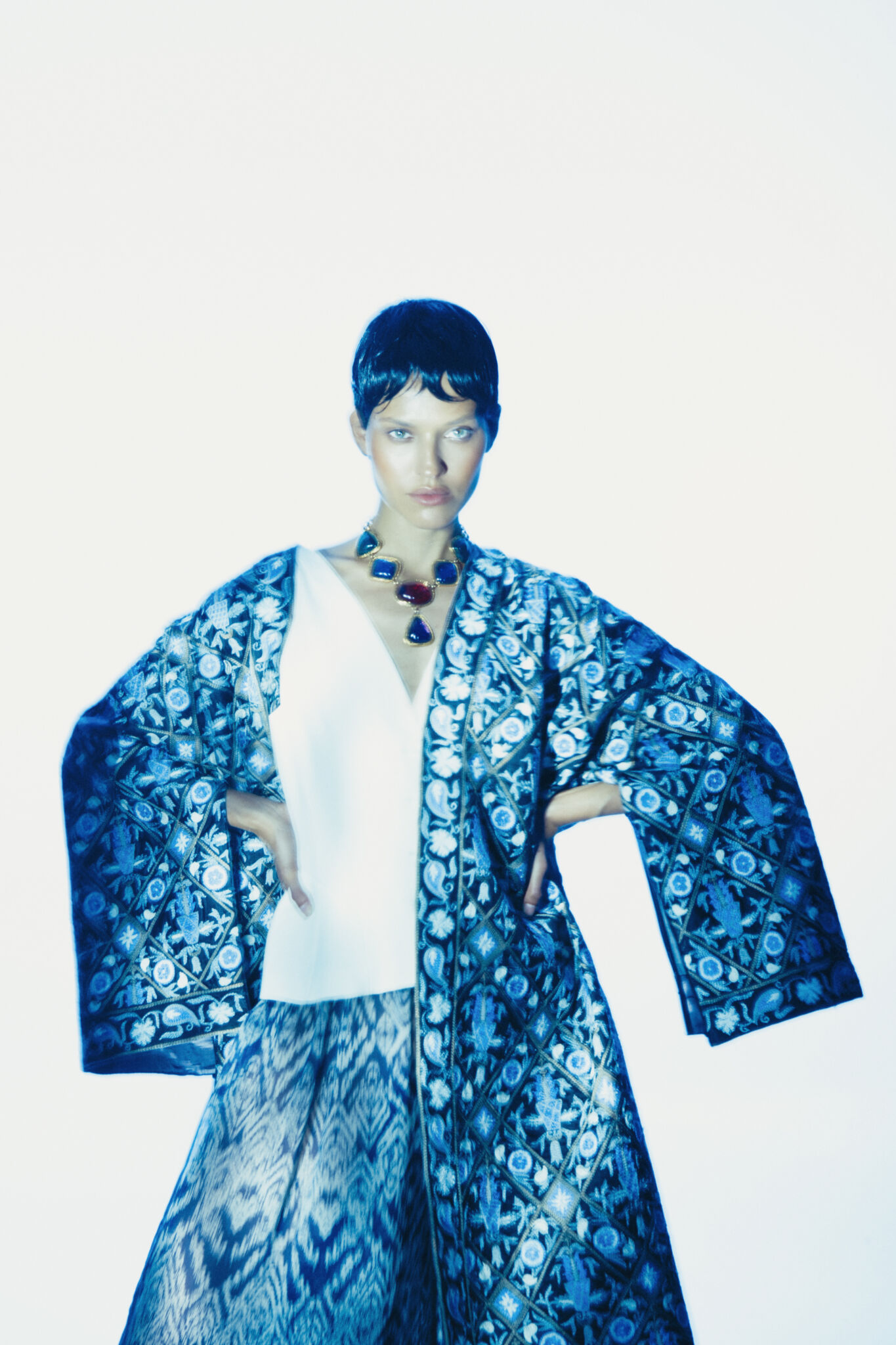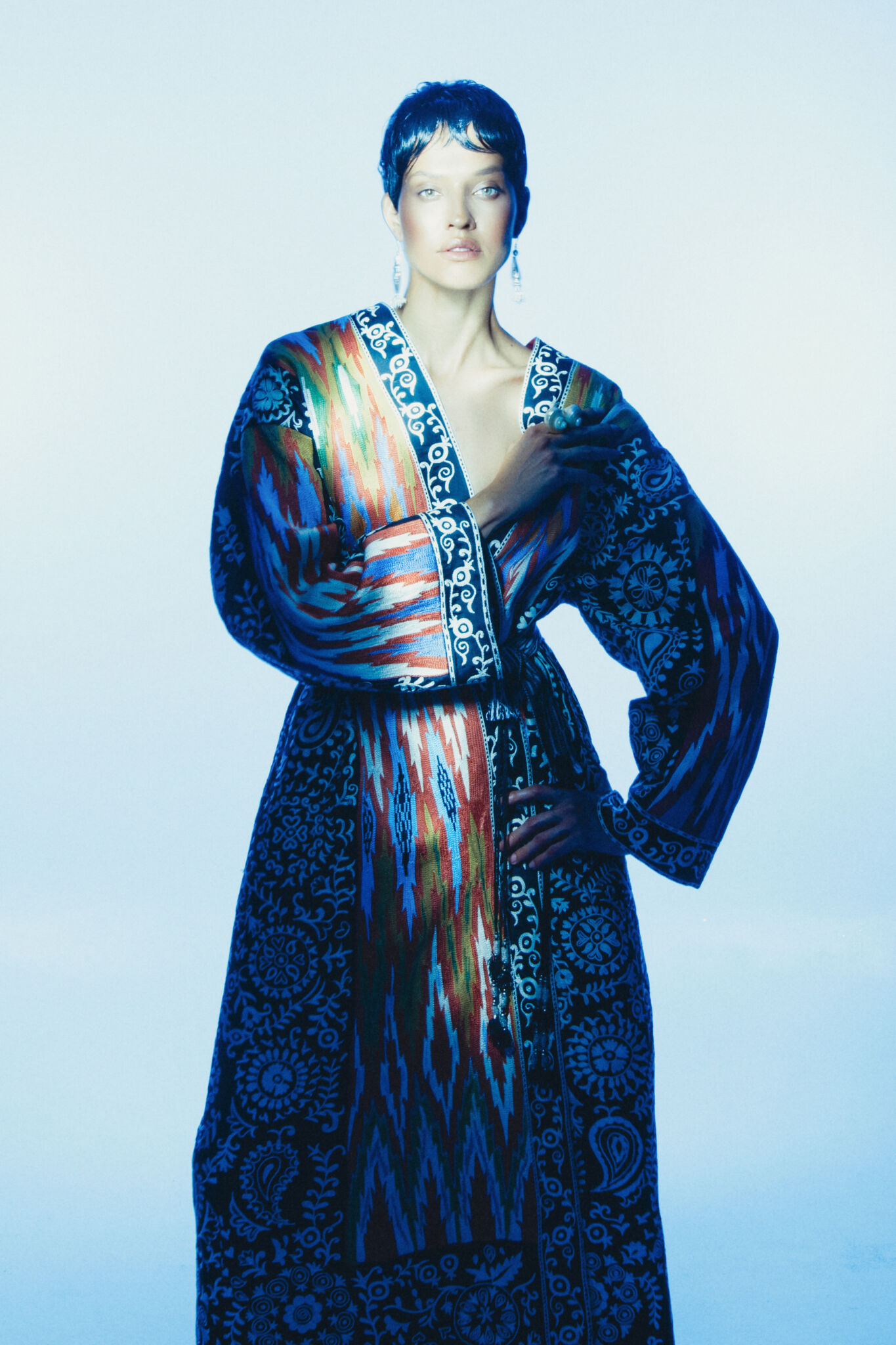 Я работаю с икатом и сузане — это кропотливый ручной труд: мастерицы часами проводят за станком, вкладывая в ткань любовь и душу. Этника не выходит из моды. Натуральный шёлк и хлопок дышат, вещи служат поколениями и становятся семейными реликвиями.