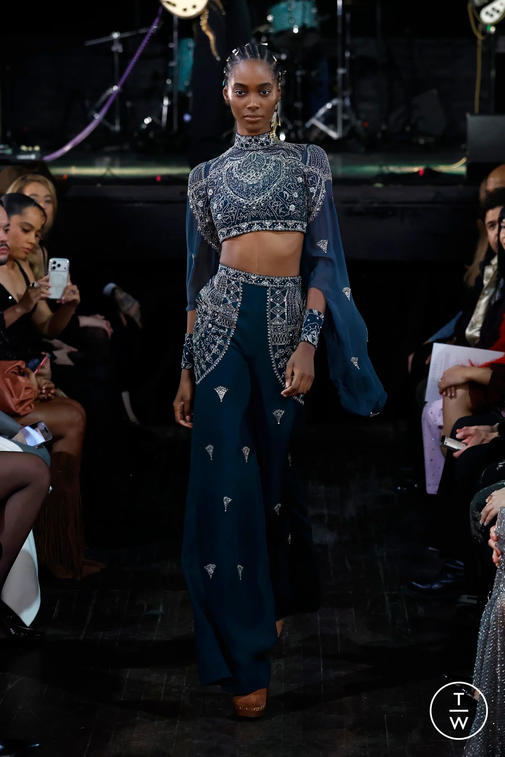 На подиуме столкнулись мистицизм ар-деко с театральностью барочного глэм-рока. В основе коллекции — сияющая декоративность, вдохновленная мифами, дымными залами и фантазийными островными мирами. Фирменный мотив «Vis Floralis» проходит через кейпы, кафтаны, смокинги и платья с многоцветными переливами, формируя эффект живой, пульсирующей флоры.